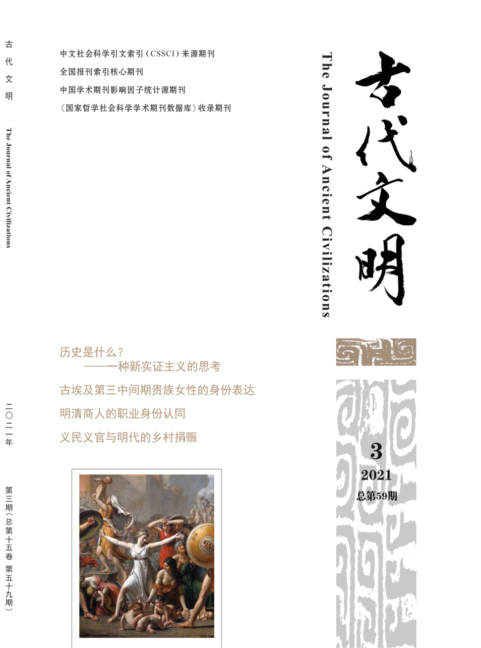 《古代文明·中英文》(季刊)创刊于2007年,是由大北师大世界古典文明研究所、东北师大亚洲文明研究院、东北师大出版社主办的学术刊物。办刊宗旨:反映和推进世界古代文明研究,增进中国学术界与国际学术界的交流,提供古代文明研究的重要信息。刊发关于古代文献的文本研究、个案实证研究、区域文明和全球文明关系研究、历史文化解释性研究,以及关于古代文明研究的重要著作和重大理论问题的阐述、评论、综述与争鸣等学术文章。