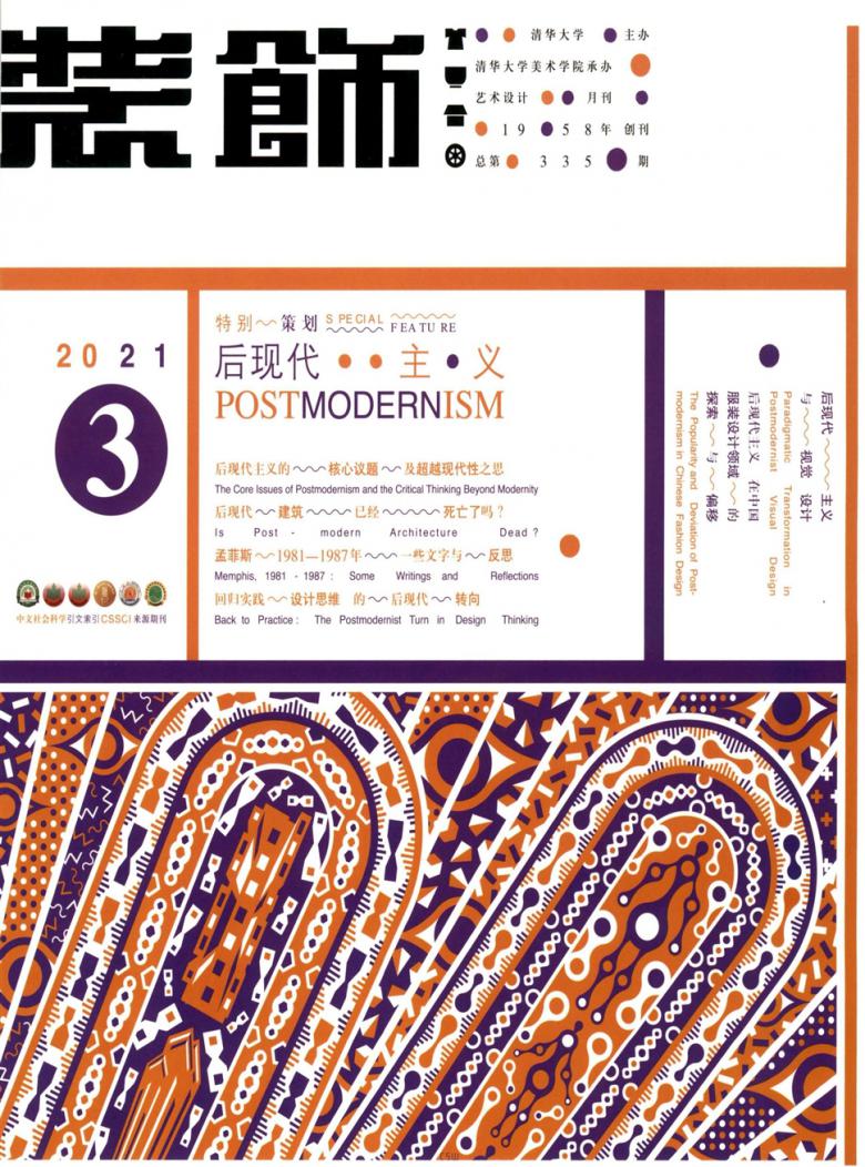 《装饰》(月刊)创刊于1958年,由清华大学美术学院主办。内容涵盖:平面设计、包装设计、广告摄影、书籍装帧设计、工业设计、展示设计、建筑设计、环境艺术设计、家具设计、染织设计、服装设计、陶瓷艺术设计、工艺美术设计(包括金属艺术、漆艺、纤维艺术、玻璃艺术等)、雕塑、绘画以及美术、艺术史论研究。