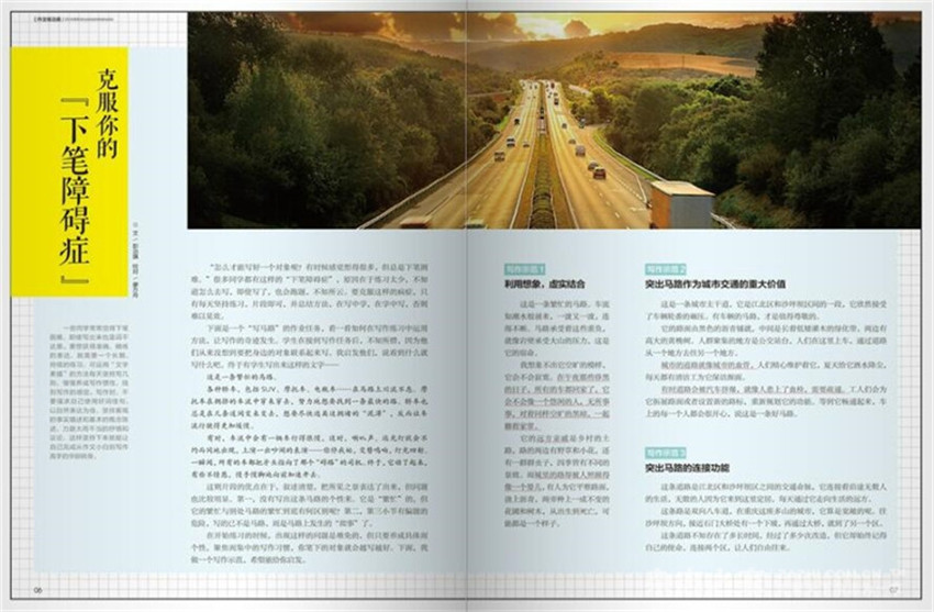 《创新作文》杂志内容涵盖小学至高中全学段,根据不同年龄段学生的认知特点和写作需求设置栏目。小学版注重趣味引导与想象激发,初中版侧重思辨能力与情感表达,高中版则聚焦深度思考与个性彰显。其内容不仅提供范文赏析与写作技巧,更通过“奇思妙想”、“创新擂台”等特色板块,鼓励学生关注生活、大胆求新,将阅读、思考与写作有机结合。
