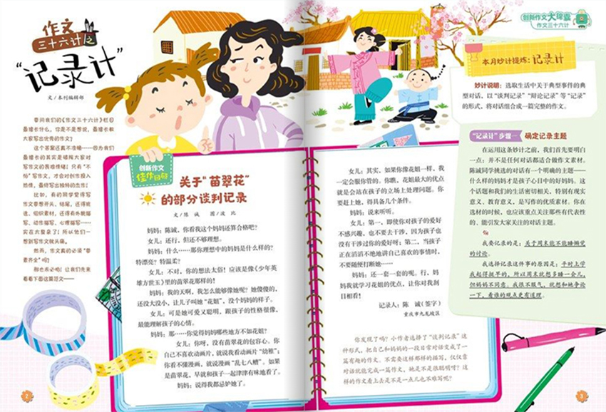 刊物针对不同学段推出五大版本:1-2年级版以拼音标注、音频导读培养基础写作能力;3-4年级版通过“同步学作文”“科普迷乐园”夯实读写基础;5-6年级版以“技法指导+范文赏析+美文提升”三步法提升思维深度;初中版聚焦中考,设置“中考争分秘笈”“满分作文评析”等栏目;晨读晚诵版整合红色经典、科普知识,强化朗读训练。特色栏目如“长在红旗下”“亲子共读”“创创讲故事”等,融合红色教育、家校共育与趣味阅读,形成覆盖全学段的读写生态。