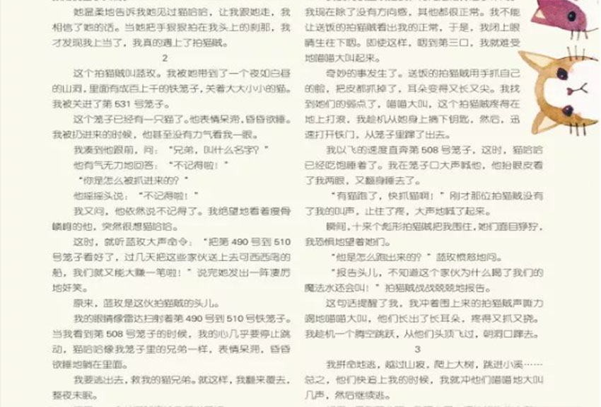 它内容丰富,涵盖童话、寓言、成长故事、作文指导、互动游戏等多个板块,主要栏目包括:“水晶翅膀”这是一个充满奇幻色彩的童话专栏,刊登国内外优秀的原创童话和经典改编故事。故事风格或唯美、或幽默、或富有哲理,旨在激发孩子的想象力,让他们在阅读中感受童话的魅力。“时光列车”以现实生活为背景的成长故事专栏,讲述孩子们在校园、家庭、朋友之间的趣事和成长经历。这些故事贴近孩子的生活,能引起他们的共鸣,并在潜移默化中传递友爱、诚信、坚持等美好品质。“冰夫老师作文课堂”由资深语文教师“冰夫老师”主持,通过生动有趣的讲解和范文分析,帮助孩子掌握写作技巧,提升作文水平。栏目内容包括写作方法、好词好句积累、优秀习作展示等,让孩子在轻松的氛围中爱上写作。