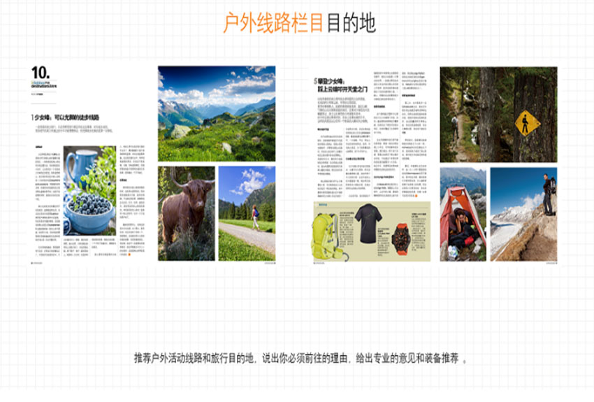 头条栏目作为杂志的核心亮点,每期聚焦一个极具话题性的户外主题,兼具潮流视角与专业深度。例如,“城市轻户外:通勤族的周末逃离计划” 专题中,不仅解读了轻户外成为都市潮流的背后逻辑,还结合明星穿搭、博主打卡案例,推荐了适合日常通勤与周末露营无缝切换的装备,让 “户外风” 融入城市日常;“极地探险新潮流:年轻人的冰川旅行指南” 则邀请资深探险家分享实战经验,避开复杂的技术分析,重点介绍冰川旅行的安全注意事项、小众路线及必备轻量化装备,让看似遥远的极地探险变得触手可及。