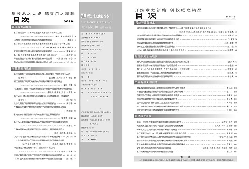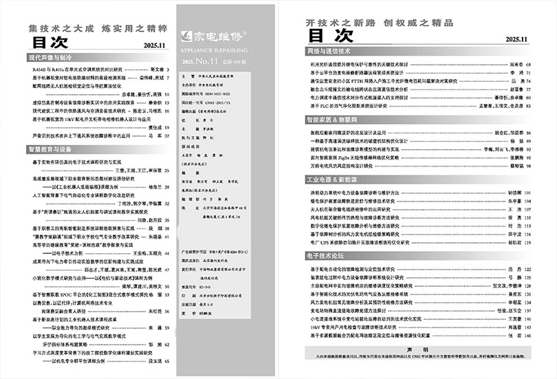 它作为行业权威期刊,杂志拥有一支由资深维修专家、行业技术骨干、院校教授组成的编辑团队,所有文章均经过严格筛选和专业审核,确保内容的准确性、实用性和前沿性。杂志的读者群体广泛,核心读者包括家电维修店经营者、企业售后技术人员、电子电器行业从业者,同时涵盖电子爱好者、职业院校机电专业师生及注重家电自主保养的家庭用户,形成了 “专业读者为主、大众读者为辅” 的多元读者结构。