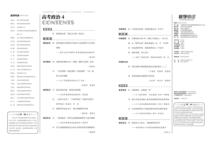 《教学考试》杂志扮演着一个独特而关键的角色——它不仅是高考命题规律的解读者,更是基础教育与高等教育衔接的桥梁,是应试技巧与核心素养培育的融合剂。
