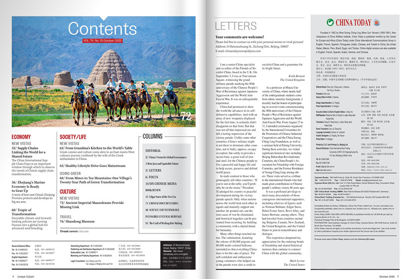 其次,它是推动民心相通的有效渠道。杂志坚持“以人为本”的叙事方式,聚焦普通中国人在时代变迁中的奋斗与梦想,展现中华文化的魅力与当代活力。无论是乡村振兴中的新农人、科技创新一线的工程师,还是非遗传承人、社区志愿者,他们的故事都承载着中国人民对美好生活的向往和对人类共同价值的践行,从而引发跨文化的情感共鸣。