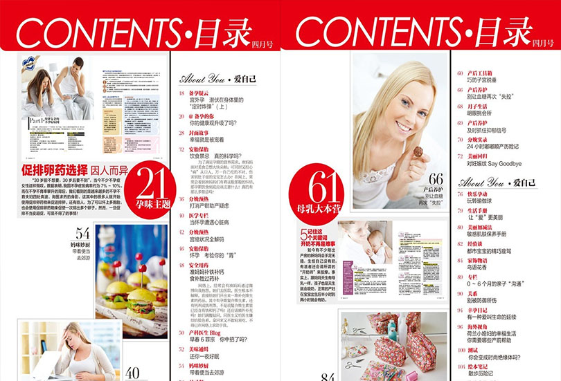 它是国内领先的孕产类时尚健康杂志,自创刊以来,凭借精准的读者定位、权威的专家团队和专业的发行渠道,迅速成为备孕及孕期女性的首选读物。杂志内容涵盖孕前准备、孕期保健、分娩指南、产后恢复、新生儿护理等全方位知识,并结合时尚生活方式,让准妈妈们在关注健康的同时,也能保持优雅与自信。