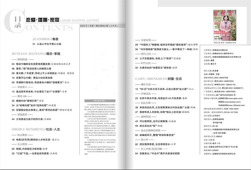 作为兼具专业性与可读性的情感生活指南,《恋爱婚姻家庭》以“注重家庭、注重家教、注重家风”为核心使命,既为单身人士提供爱情导航,为已婚家庭解析相处之道,也为家长们搭建育儿交流平台,通过温暖有力的内容陪伴读者在情感与生活的成长路上稳步前行,成为跨越时代的“家庭生活良师益友”。