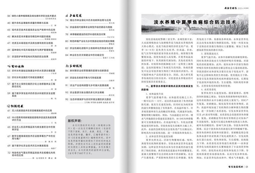 《农家致富顾问》杂志在内容特色上,杂志突出“三性”——实用性、指导性、普及性。每一篇文章均注重可操作性,力求让读者“看得懂、学得会、用得上”。例如,杂志曾刊发《无公害香蕉主要病虫害的防治技术要点分析》,系统介绍香蕉种植中的常见病虫害及科学防治方法,帮助农户提升品质、增加收益;又如《小拱棚韭菜高产栽培技术规程》,详细讲解低成本、高效益的种植模式,为农村产业结构调整提供切实可行的技术路径;再如《浅析砚山县稻田养鱼发展现状及对策》,从区域实际出发,分析生态养殖的潜力与问题,提出可持续发展建议,具有极强的地域参考价值。这些内容不仅传递知识,更直接转化为生产力,真正实现“科技兴农、知识致富”。