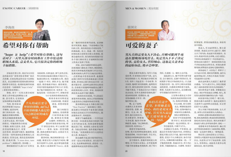 《品味》主要栏目:职场、美身体、潮流、时装、自我、在生活等。