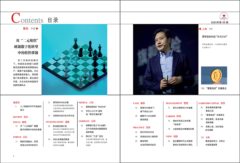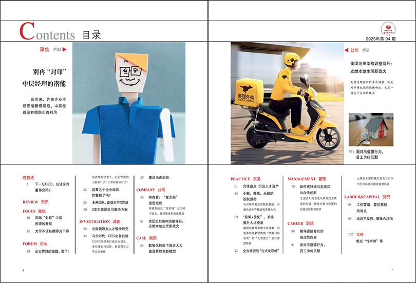 杂志不仅仅是一本期刊,更是一个充满活力的学习社群和资源平台。我们始终与中国的企业和人力资源从业者站在一起,共同探索在时代如何更好地激发人的潜能、凝聚人的智慧、成就人的价值。我们致力于将最前沿的思想、最实用的工具、最真实的案例呈现给您,助力您的组织实现从“人力资源管理”到“人力资本增值”的飞跃,最终赢得人才,赢得未来。