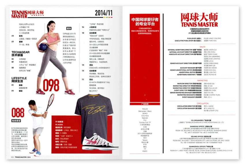 《网球大师》杂志是国内颇具影响力的专业网球刊物,国内统一刊号11-1383/G8,以月刊形式稳定发行,单期页数达135页,凭借精美的刊面设计与丰富的内容储备,在网球爱好者群体中树立了良好口碑。