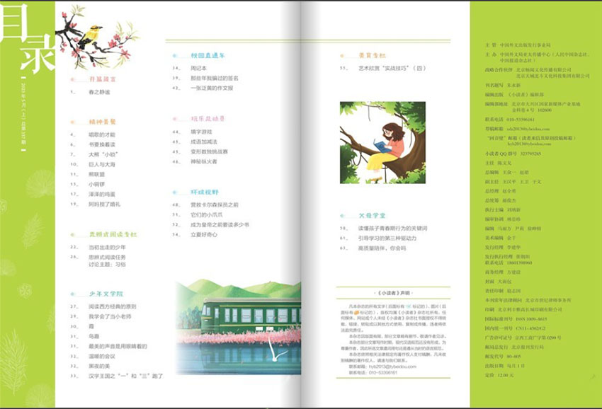 《小读者》作为一本精细打磨的素质教育杂志,除了给孩子们带来有趣的文章、有趣的游戏等,还有着很多具有实际指导意义的文章。整本杂志为孩子提供了充足的学习、娱乐资源,希望他们在阅读中收获快乐,同时得以开发更多的潜能和兴趣。
