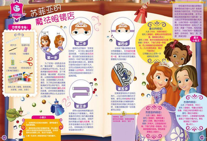 杂志采用“故事+游戏+手工”的综合模式,强化品质教育的实践性:主题故事:每期包含两个完整故事,如《古堡幽灵派对》《高尚骑士的故事》等,通过苏菲亚的冒险传递清晰的教育主题,例如诚实守诺、勇敢担当、分享互助。