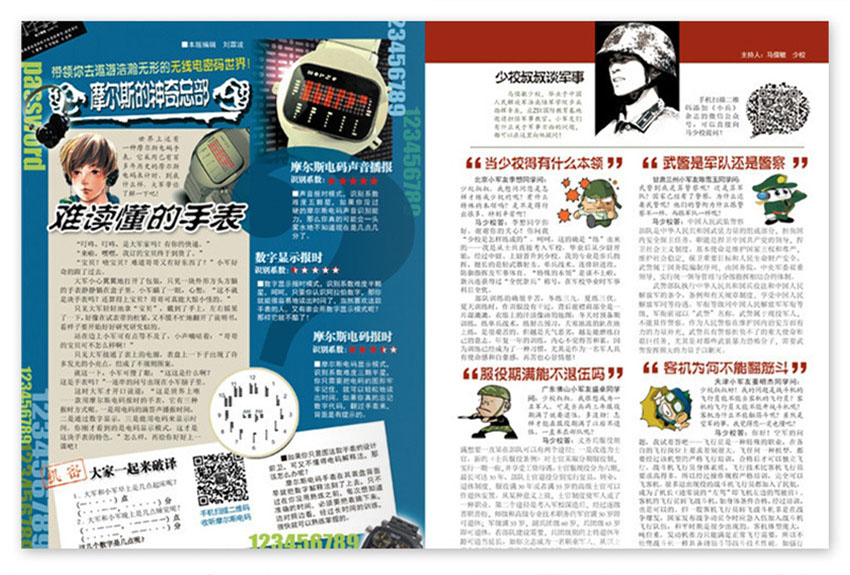 杂志的栏目丰富、形式多样,每期均围绕一个核心主题展开,兼顾知识性、故事性与互动性,深受小读者喜爱。主要栏目包括:战争动漫:以原创漫画或动画脚本形式还原经典战役,如上甘岭战役、诺曼底登陆、中途岛海战等。画面热血激昂,情节紧凑,辅以战术图解与历史背景注释,让孩子在“看故事”中读懂战争逻辑与战略智慧。军事互动:设置“我是小指挥官”“装备拼装挑战”“密码破译营”等互动板块,鼓励读者动手动脑。例如,通过AR技术扫描页面即可观看3D坦克模型旋转展示;或参与线上模拟沙盘推演,体验排兵布阵的乐趣。