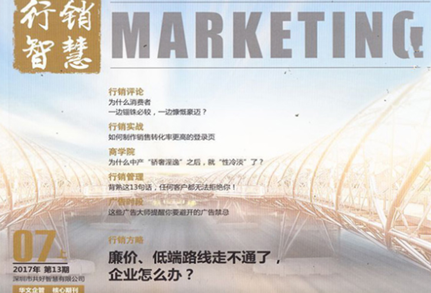 《行销智慧》杂志是一本兼具思想深度与行业广度的市场营销权威杂志,自创刊以来,始终立足于中国市场经济发展的前沿,聚焦企业营销实践中的核心痛点与战略挑战,致力于为企业家、营销管理者、品牌策划人员及商业研究者提供系统化、实战化、前瞻性的知识服务。作为国内营销领域的标杆性读物,它不仅是一本传递资讯的刊物,更是一个融合智慧、激发思考、推动变革的高端学习平台。