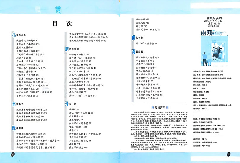 《幽默与笑话》的宗旨,简而言之,就是“以笑为媒,以智为魂”。我们相信,幽默不仅仅是一种语言艺术,更是一种生活态度,一种面对困境时的乐观与智慧。因此,本刊致力于深入挖掘古代幽默、笑话遗产,同时紧跟时代步伐,收集整理现代社会的幽默趣事,通过笑话创作、民间幽默、外国幽默等多个栏目,展现幽默的多样性和普遍性。我们的目标,是让读者在阅读中会心一笑,更在笑声中收获思考,提升自我,以更加积极和智慧的态度面对生活。