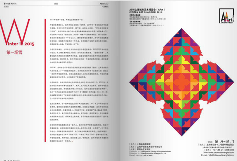 杂志始终秉持“以财经之眼观艺术之变,以理性之思导收藏之行”的办刊宗旨。其核心目标有三:其一,做艺术市场的瞭望者。通过持续追踪全球拍卖行情、画廊动态、艺博会趋势及政策变化,及时预警市场风险,捕捉潜在机遇,为读者提供前瞻性的判断依据。其二,做收藏投资的引路人。摒弃浮夸宣传与情绪渲染,坚持用数据说话、用逻辑推理,引导读者建立长期主义的投资理念,理解艺术品的内在价值与流通规律。其三,做艺术与资本的桥梁。促进艺术界与金融界、收藏界与学术界的对话与合作,推动艺术品资产化、证券化、金融化的探索,助力中国艺术市场制度建设与生态优化。