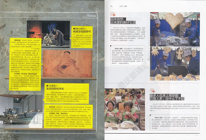 “老课本·历史老照片”精选20世纪以来的珍贵历史影像,通过“情景还原+当代意义”的排版设计,帮助学生:情感共鸣:以“亲历者”视角理解历史人物的抉择;“前沿·开读”聚焦青少年亚文化,用数据图表与访谈实录呈现现象背后的社会心理,解决“写作无新意”的痛点。“News·一分钟”“碎片化阅读”专栏,用信息图梳理一周热点,提炼“一句话核心立意”,适配考场作文的速记需求。