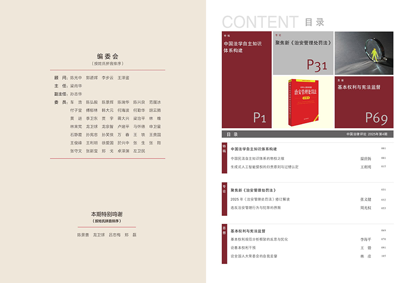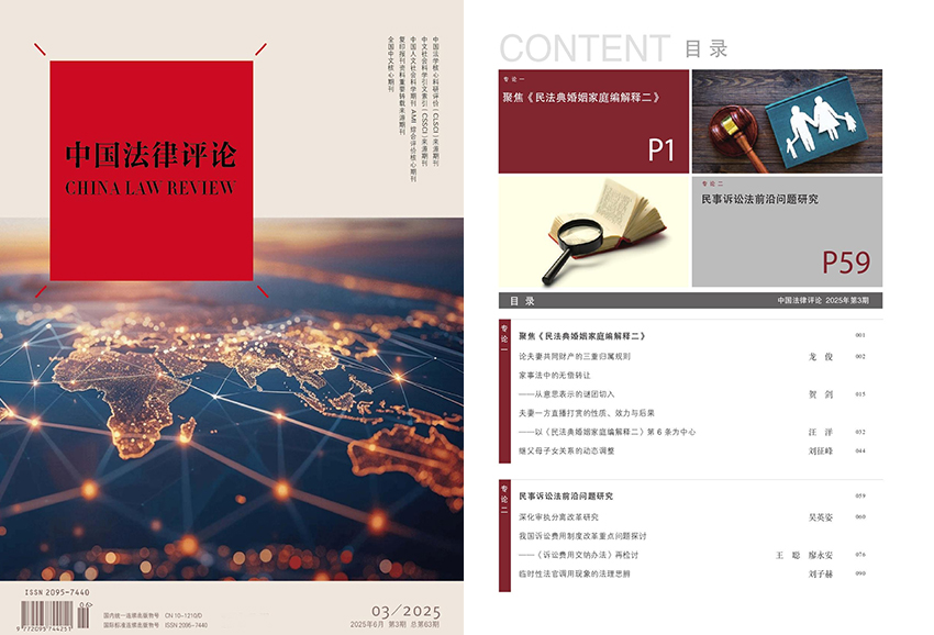 《中国法律评论》杂志是一本在法学领域具有广泛影响力和高度认可度的专业学术期刊,自创刊以来,始终秉持“理性、建设性、严谨办刊、积极创新”的理念,致力于打造一本有态度、有力度、有温度的高品质法律刊物。是国内法学研究与法治实践交流的重要平台。其刊发内容兼具学术深度与现实关怀,在推动中国法学理论发展、促进法律制度完善、服务法治中国建设方面发挥着重要作用。