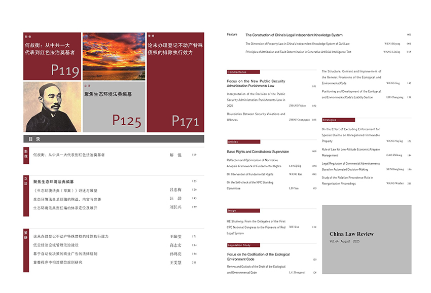 杂志不仅是一本记录中国法治进程的学术刊物,更是一个推动法学创新、传播法治理念、凝聚法律共识的思想平台。它以专业的精神、开阔的视野和扎实的内容,持续服务于广大法学研究者、法律实务工作者以及关心中国法治发展的社会各界人士,为中国法学的繁荣与法治文明的进步贡献着不可替代的力量。