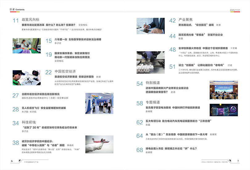 始终坚守 “服务国家战略、聚焦产业前沿、搭建沟通桥梁、赋能高质量发展” 的创刊宗旨,以专业性、权威性、实用性为核心导向,致力于成为产业发展的 “观察者、解读师、连接器、推动者”。杂志紧密围绕国家重大发展战略,全面解读党中央、国务院及各部委关于战略新兴产业的规划部署、政策文件、扶持措施,深入分析政策出台的背景、内涵与影响,帮助企业、学术界准确把握政策导向,用好政策红利,同时为政府决策提供民意反馈与实践参考,推动政策优化完善,确保国家战略精准落地。