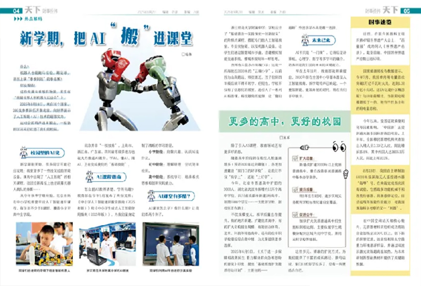 除了文学创作的展示,还承担着提升中学生综合素养的重要使命。它巧妙地将文学性与新闻性、知识性融为一体。在“大视点”“大探秘”等版面中,报纸通过深度报道和科普文章,拓宽了学生的视野,为他们的写作积累了丰富的素材。文学从来不是空中楼阁,它源于生活又高于生活。报纸通过对时政热点的解读、对科学奥秘的探索以及对校园生活的描绘,为中学生的文学创作提供了源源不断的灵感源泉。
