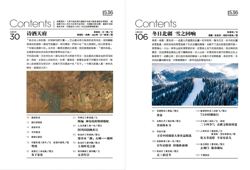 杂志以“主题故事”为灵魂,通过专业记者团队的实地探访,挖掘如武陵源张家界、九寨沟等景点的背后故事,率先报道江南水乡、开平碉楼等新兴旅游地。栏目涵盖“旅游摄影”“自由行”“粤游越开心”“市场巡礼”“酒店精选”等,既提供实用攻略,又关注行业动态。例如,“重走马可·波罗之路”专题历时80余天、行程万里,将历史与现代旅行结合,奠定其深度文化旅游杂志的地位。此外,杂志还推出“四季游中国”系列,如《踏春秘笈》等,系统梳理季节性旅游热点,满足读者多样化需求。