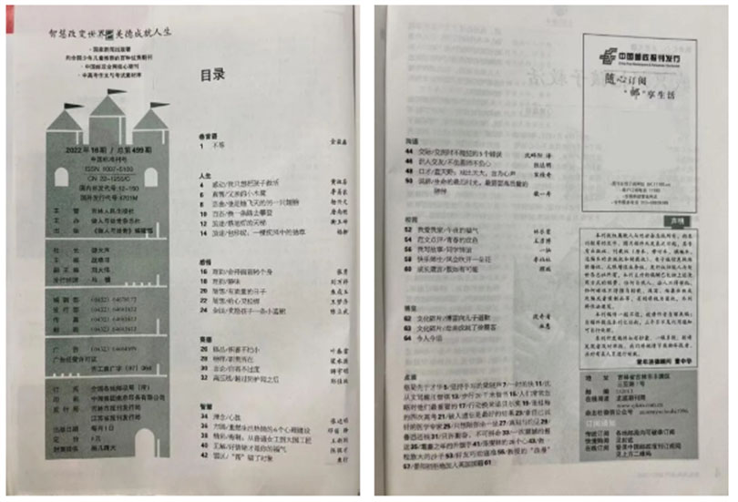 杂志因其内容温暖而不说教、深刻而不晦涩,赢得了广大读者的高度认可。许多学校将其作为德育辅助读物,家长将其视为“亲子共读”的首选,青少年则从中获得面对挫折的勇气与处理人际关系的方法。有读者留言:“这本杂志让我学会了换位思考,也让我和父母的关系变得更融洽。”更有教师评价:“它不是灌输道理,而是点燃心灯。”