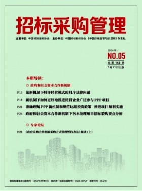 《招标采购管理》创办于2012年,主要栏目有招标与全过程工程咨询论坛专题、最新政策、行业资讯、2020年征文活动获奖论文专栏、电子招标投标、理论研究、实务操作、解疑释惑、行业数据,丰富的内容使您能够自由地遨游在知识的海洋里,了解最新趋势。是一份在中国具有重要影响力的学术期刊,专注于招标采购领域的理论与实践研究。创刊以来,始终致力于推动中国招标采购行业的健康发展,提升行业管理水平,促进相关政策法规的完善与实施。